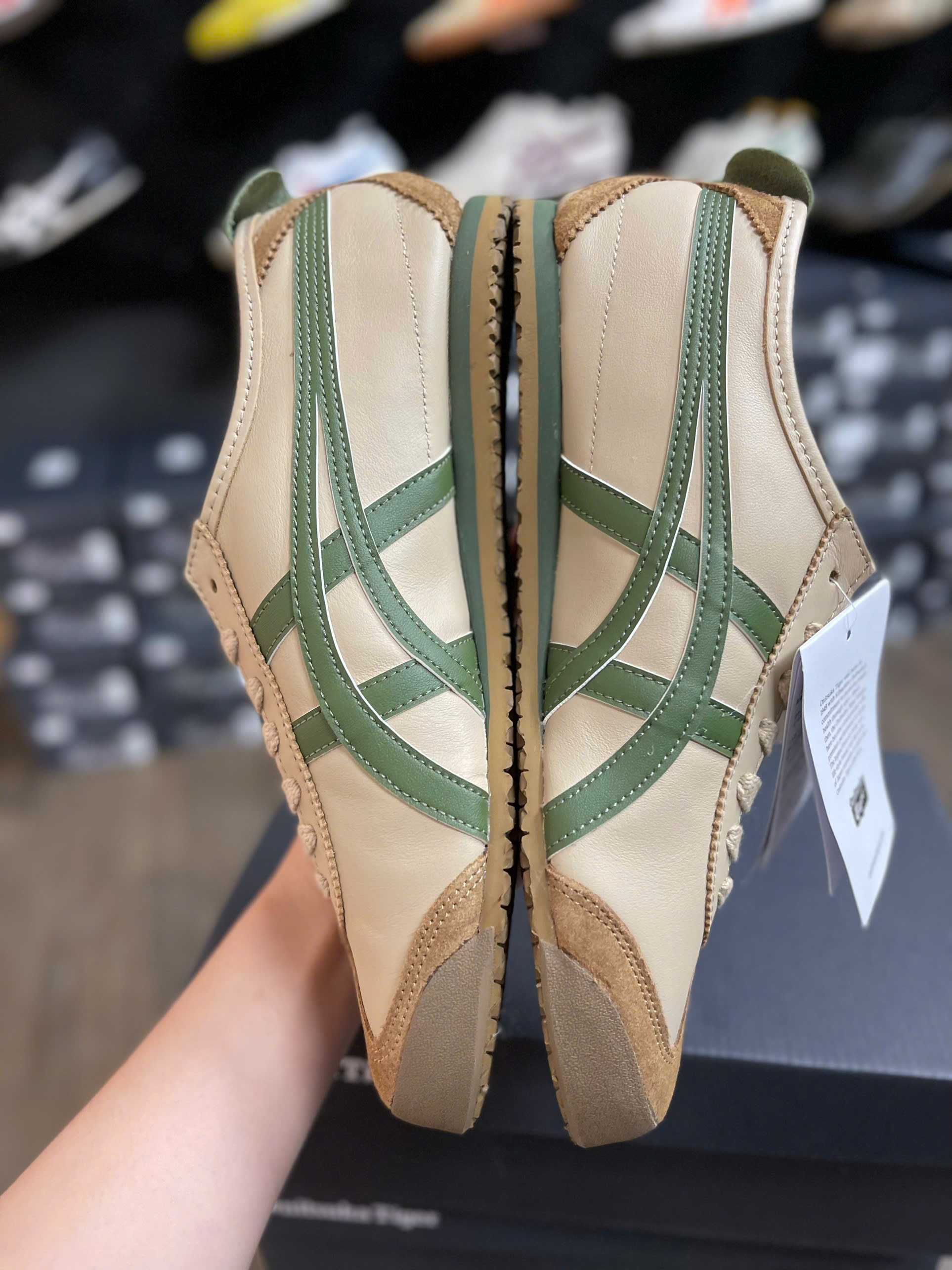 Onitsuka Tiger Mexico 66 Beige/Grass Green mang đến sự kết hợp màu sắc đầy tươi mới và cổ điển. Tông Beige (be nhạt) trang nhã làm nền, kết hợp với sọc Grass Green (xanh lá cỏ) rực rỡ, tạo nên tổng thể hài hòa, vừa tinh tế vừa nổi bật. Đôi giày được chế tác từ da tự nhiên, mang lại độ mềm mại, linh hoạt và cảm giác ôm chân thoải mái, đồng thời đảm bảo độ bền bỉ theo thời gian. Lớp đệm lót cao cấp giúp tăng cường sự êm ái, hỗ trợ bàn chân tối ưu khi di chuyển. Phối màu Beige/Grass Green không chỉ mang nét cổ điển đặc trưng của Onitsuka Tiger mà còn toát lên phong cách năng động, trẻ trung, phù hợp cho những ai yêu thích sự phá cách nhưng vẫn giữ được sự thanh lịch và dễ dàng phối đồ.